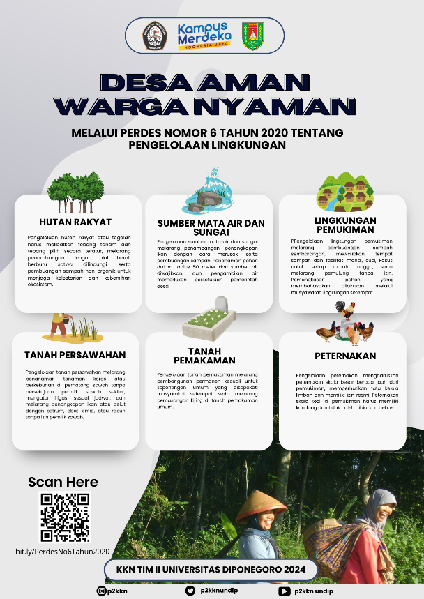Desa Aman Warga Nyaman melalui Sosialisasi Perdes Nomor 6 Tahun 2020 tentang Pengelolaan Lingkungan oleh Mahasiswa KKN TIM II Undip