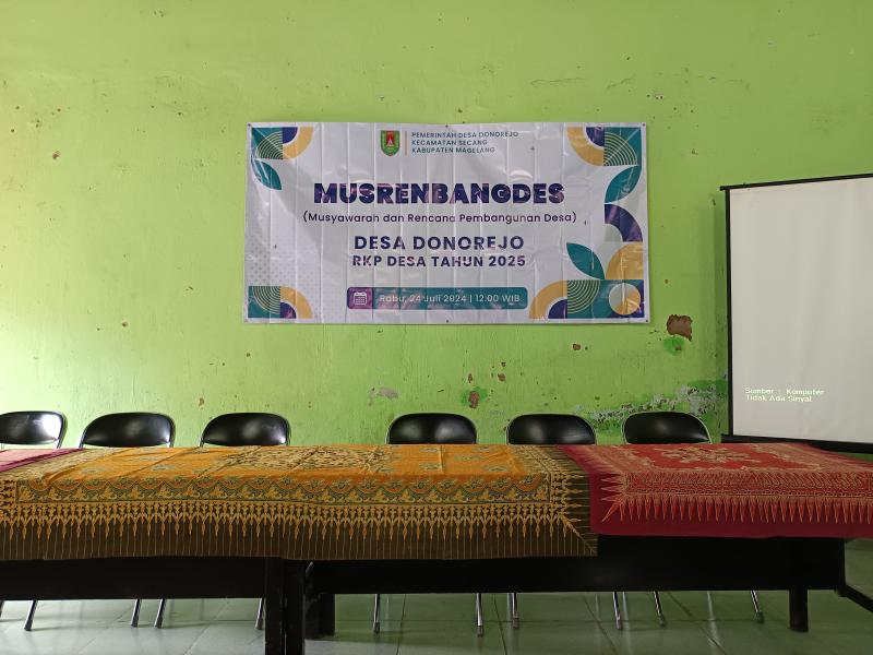 Desa Donorejo, 24 Juli 2024 - Desa Donorejo menggelar Musyawarah Perencanaan Pembangunan Desa (Musrenbangdes) pada tanggal 24 Juli 2024 di Balai Desa Donorejo. Acara ini bertujuan untuk menyusun rencana pembangunan desa yang partisipatif dan sesuai dengan kebutuhan masyarakat. Dihadiri oleh Kepala Desa Donorejo, Bapak Miftahurridlwan, perangkat desa, tokoh masyarakat, serta perwakilan dari berbagai lapisan masyarakat, acara ini berjalan dengan lancar dan penuh antusiasme.